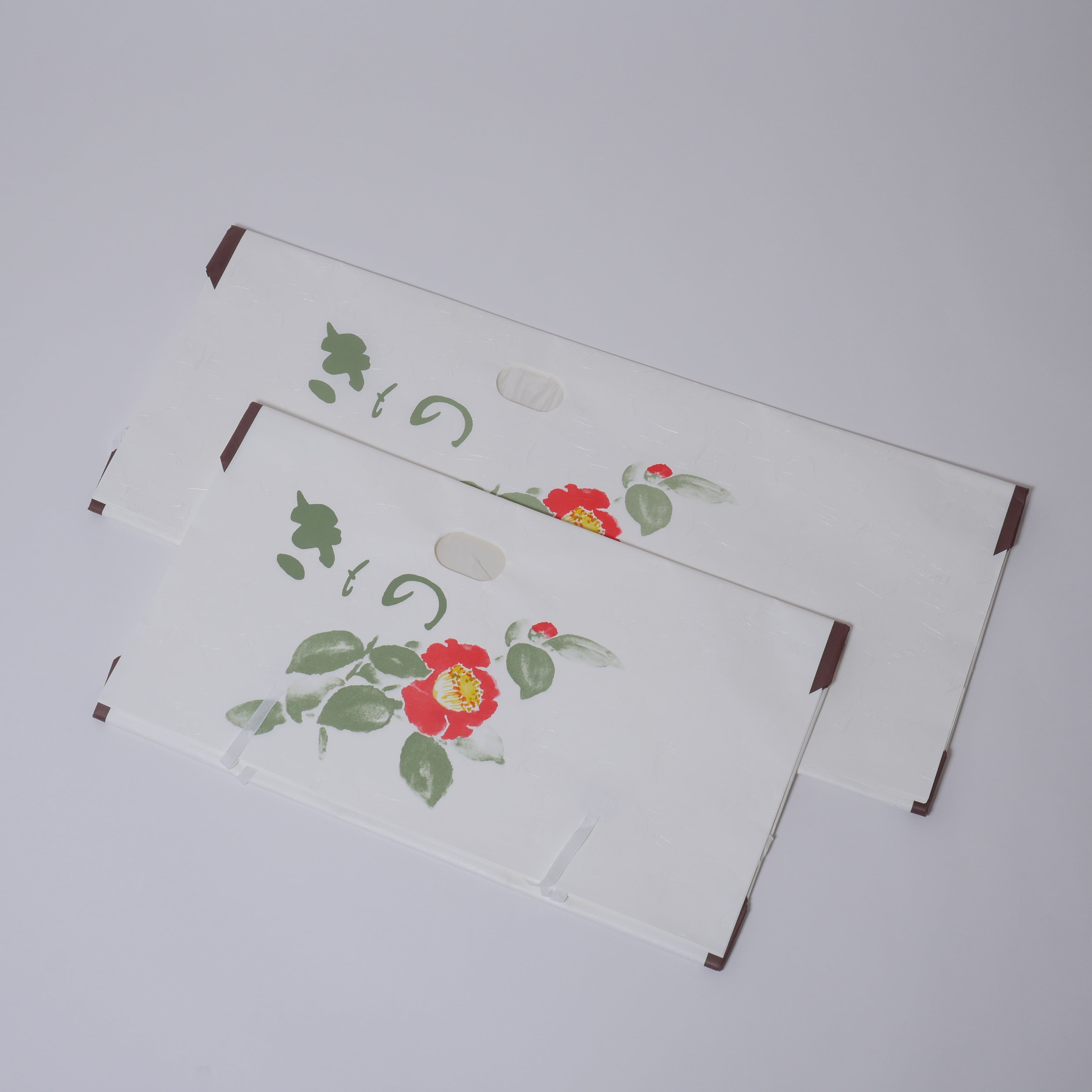 This style of tatoushi started to be used once it became customary to order kimono instead of buying fabric and making kimono by oneself since the kimono needed to be wrapped to be taken home. Originally the strings to close the envelope used to be made of rolled paper but nowadays most strings are cotton.